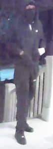 The second suspect is described was, wearing glasses, a black jacket, a dark coloured sweater, black pants, black shoes and black balaclava.