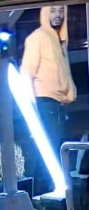 The suspect is described as male, 20 to 30 years-old, with a thin build, short black hair, and black facial hair. He was wearing a yellow hooded sweater, black jeans with chain on the right side, a white cloth hanging from his rear pants pocket and black running shoes.