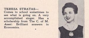 The Malvern Collegiate yearbook entry for Teresa Stratas who attended the local high school in the 1950s.