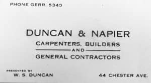 The business card for Duncan & Napier was in the time capsule from the Extension Sunday School on Courcelette Road.