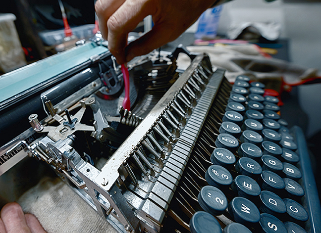 “Usually the problems reveal themselves, but sometimes you have to dig a little because typewriters are as delicate and quirky as people…One of them even had a dead mouse inside; it had been sitting in a barn.”