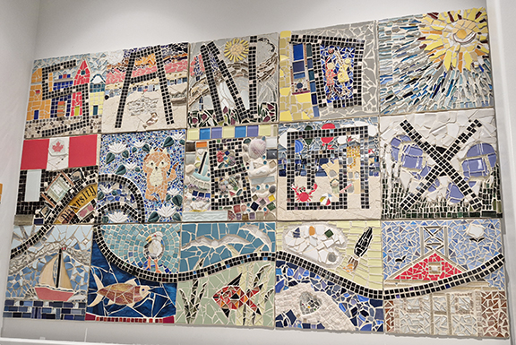 Led by local mural artist Cristina Delago, seniors in the program learned about the history of mosaics in Toronto and then created their own panel to add to a larger mosaic mural.