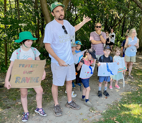 Teacher Sean Hurley-Hart and some of his students from the Toronto Nature School attended the rally. The student’s had hand-made signs about protecting the ravine, and Hurley-Hart spoke about its importance to the school’s students and for environmental education.