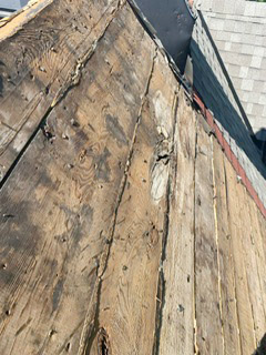 The roof of an East Toronto house had its shingles removed and the homeowner was then given a quote of $50,000 to replace the wood in an attempted roofing scam. This photo of the roof was sent to Beach Metro Community News by the homeowner, who wants residents to be wary of attempted roofing scams in the area.