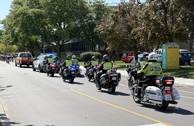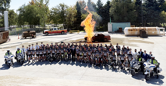 For the ninth year running, Toronto Fire Chief Jim Jessop and members of Toronto Fire Services welcomed 70 firefighters from across the province arriving by bike at the Toronto Fire Academy at 895 Eastern Ave. on Wednesday, Sept. 3.