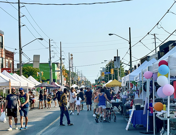 This photo shows the 2024 Pape Village Block Party. This year’s celebration takes place this Saturday and Sunday along Pape Avenue between Cosburn and Mortimer avenues. Photo: Pape Village BIA.