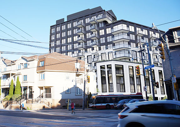 The proposal for 419-425 Woodbine Ave. will also include 66 square metres of commercial space at grade, and provide 124 vehicle parking spots and 124 bicycle parking spots.