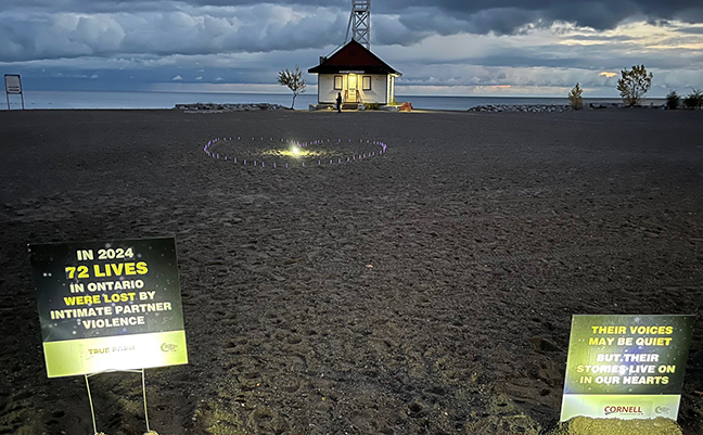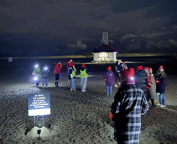 For those who lost their lives to domestic violence last year, Night Light Walk organizers put together a heart-shaped purple light display in the sand just north of the Leuty Lifeguard Station to honour their memory.