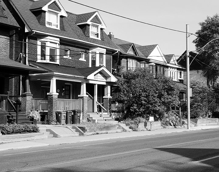 This grouping of semi-detached houses (shown in photo above) sits on Woodbine Avenue, just a little south of Kingston Road. The year is 1955.