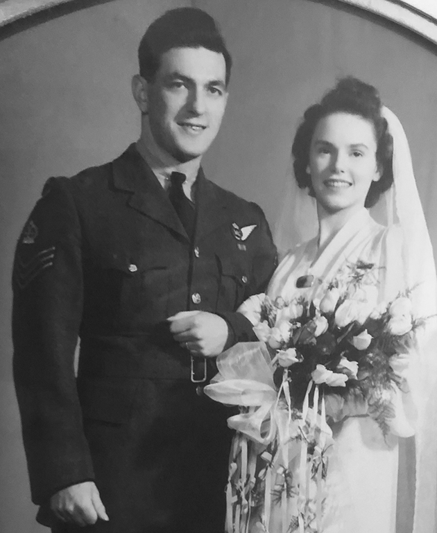 They were married on May 3, 1945. Em was on leave from his service in the Second World War as a wireless operator and gunner with the Royal Canadian Air Force at the time of the wedding.