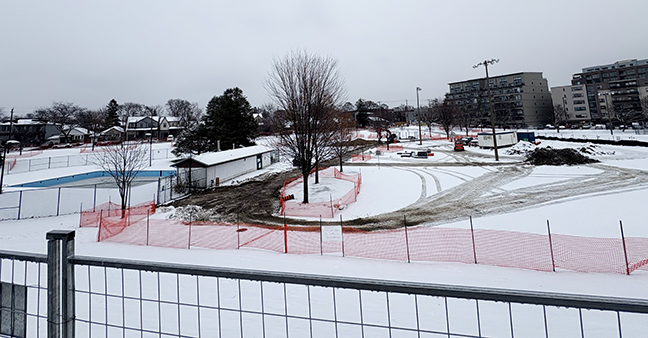 Reconstruction work began this month on Blantyre Park in southwest Scarborough. Among the changes will be a new pool facility to replace the existing pool that can be seen on the left of this photo. Photo by Matthew Stephens.