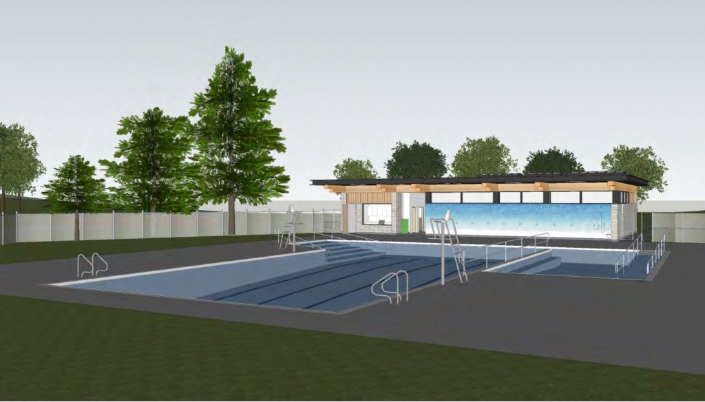 The existing outdoor pool and its associated building will be replaced with a new facility that is “compliant” with the Accessibility for Ontarians with Disabilities Act (ADOA). Changes to the pool include a new changeroom building, a new five-lane lap pool with a shallow (three-foot deep) family side pool, an accessible ramp leading to the pool deck, and a stepped-down wading pool entrance area.