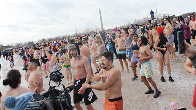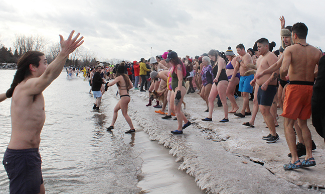 More than 2,000 people braved the frigid air and water temperatures on New Year’s Day to take part in a polar bear dip at Woodbine Beach on the afternoon of Thursday, Jan. 1.