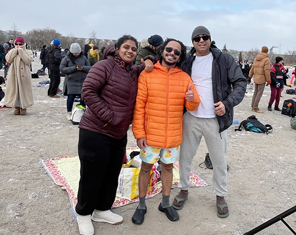 With temperatures hovering in the range of -15 Celsius with the wind chill, the plungers went through a warm-up session before bravely heading into Lake Ontario for the polar bear dip.