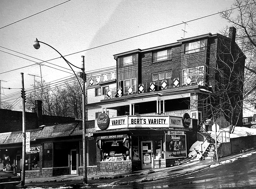 The same corner on a recent winter’s day, with the much-loved Beacher Cafe now in the location that was Bert’s Variety back in 1984. Photo by David Van Dyke.
