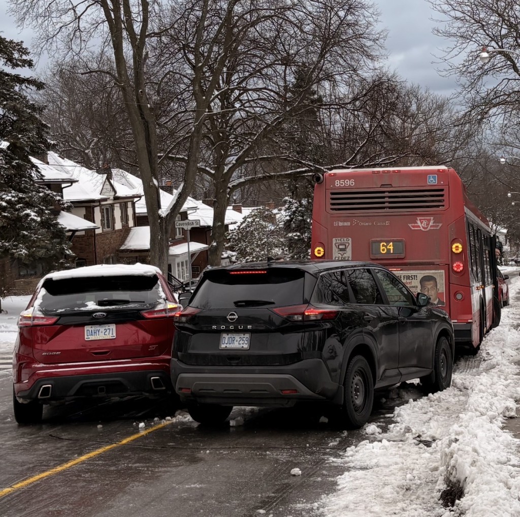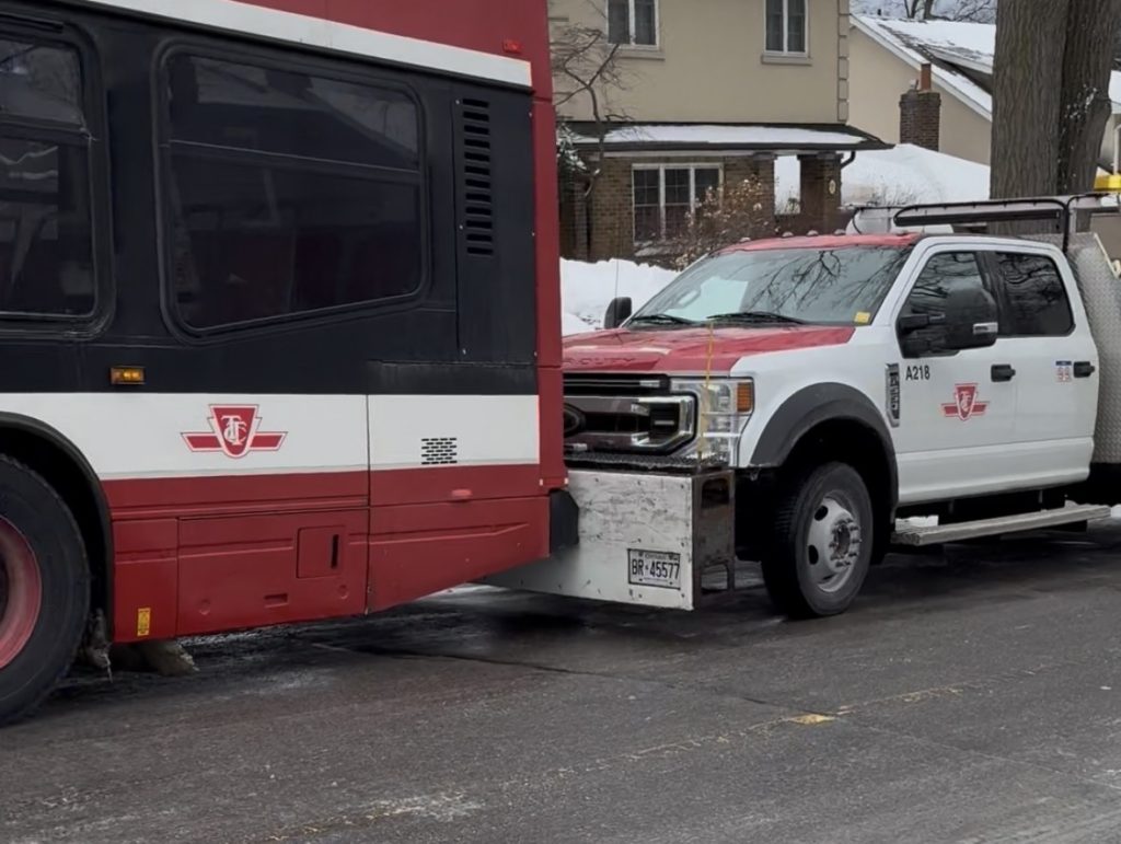 The TTC says the 64 Main bus is detouring via Kingston Road, Woodbine Avenue and Queen Street East due to icy streets as of 9:30 a.m.
