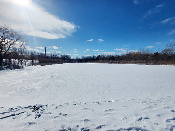 Here are more of Kat Bergeron’s photos of some of the snowy scenes in the Woodbine Beach/Woodbine Park area along with a couple of photos from the fall to remind you that trees do have leaves, water isn’t always frozen, and there’s grass somewhere under all that snow: