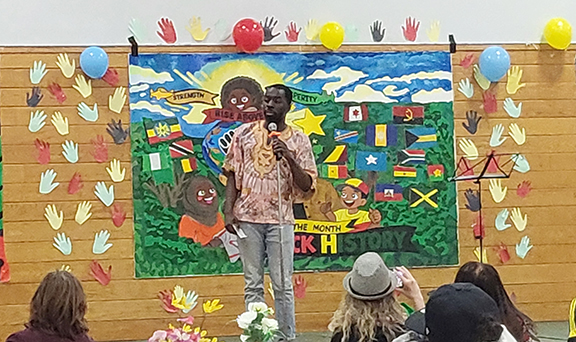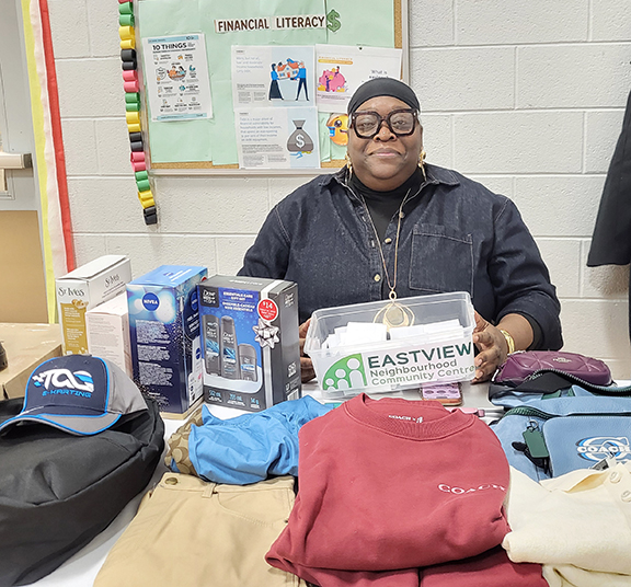 Author, journalist and activist Desmond Cole speaks the Eastview Black History Month celebration on Sunday, March 1. Photo by Kat Bergeron.Food is served as part of the Eastview Black History Month celebrations on Sunday, March 1. Photo by Kat Bergeron.Rosy Toutsop was one of the vendors taking part in the Eastview Black History Month celebration on Sunday, March 1. Photo by Kat Bergeron.Laurette Jack, Eastview BGC Program Director, at the Eastview Black History Month celebration held on Sunday, March 1. Photo by Kat Bergeron.
