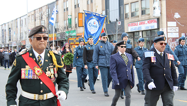 The parade started on the corner of Danforth and Donlands avenues, and included a wreath-laying ceremony at Alexander the Great Parkette.