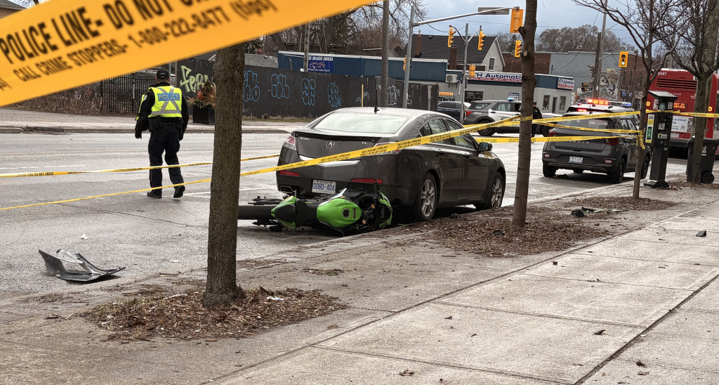 Toronto police held a press conference at the scene at 6:30 p.m. on Sunday. Police said the driver of a vehicle involved in the collision remained on the scene and is co-operating with police and the driver of the motorcycle passed away in hospital.