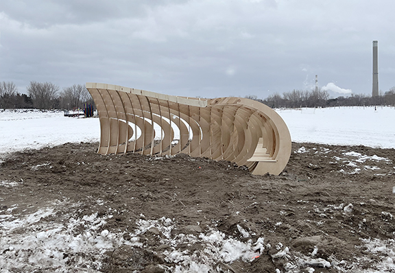 Despite the cold and frozen landscape on Woodbine Beach, the installation this year’s Winter Stations exhibits has gone smoothly.