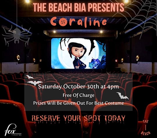 The Beach BIA is organizing a free Halloween-theme movie screening of Coraline on Saturday, Oct. 30 at the Fox theatre. The movie starts at 4 p.m. Prizes will be given […]