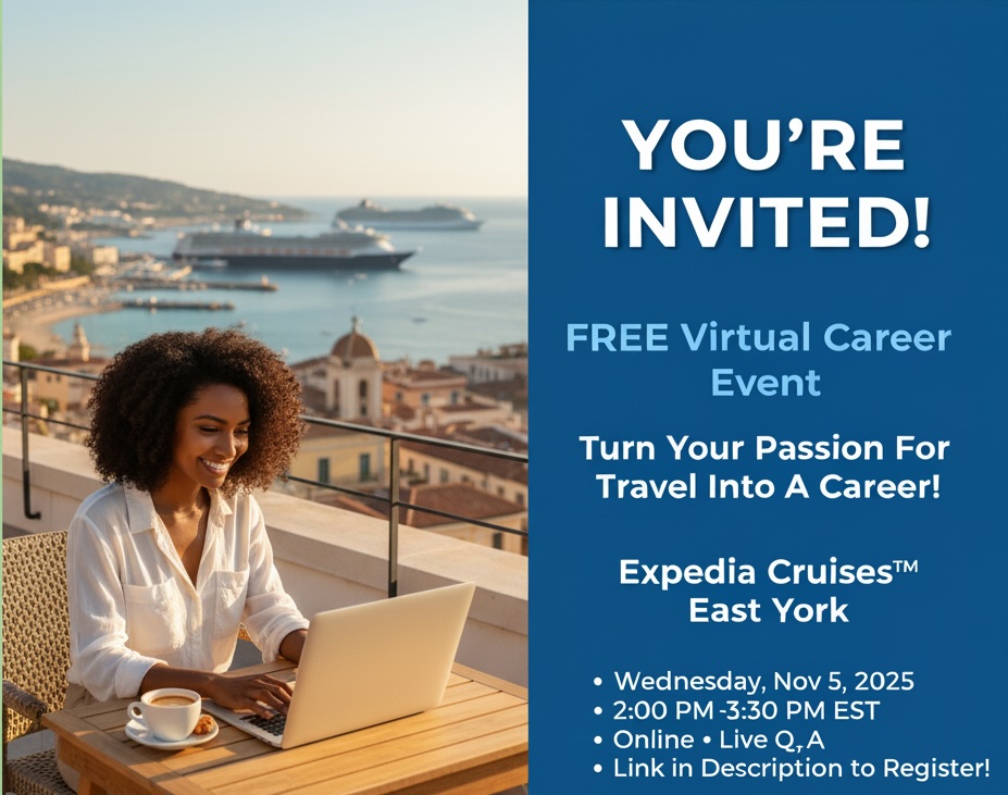 We’re excited to invite you to our FREE Virtual Career Event, hosted by Expedia Cruises™ East York, where you’ll discover how to build a rewarding and flexible business as a Vacation Consultant.