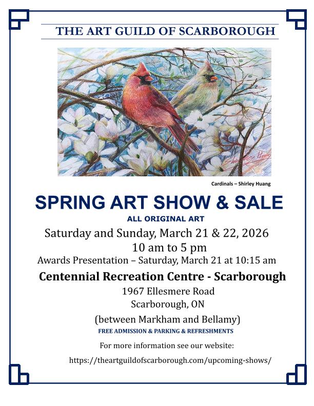 The Spring Art Show and Sale showcases over 400 juried, original works of art created by The Art Guild of Scarborough artists, many of whom will be in attendance. The […]