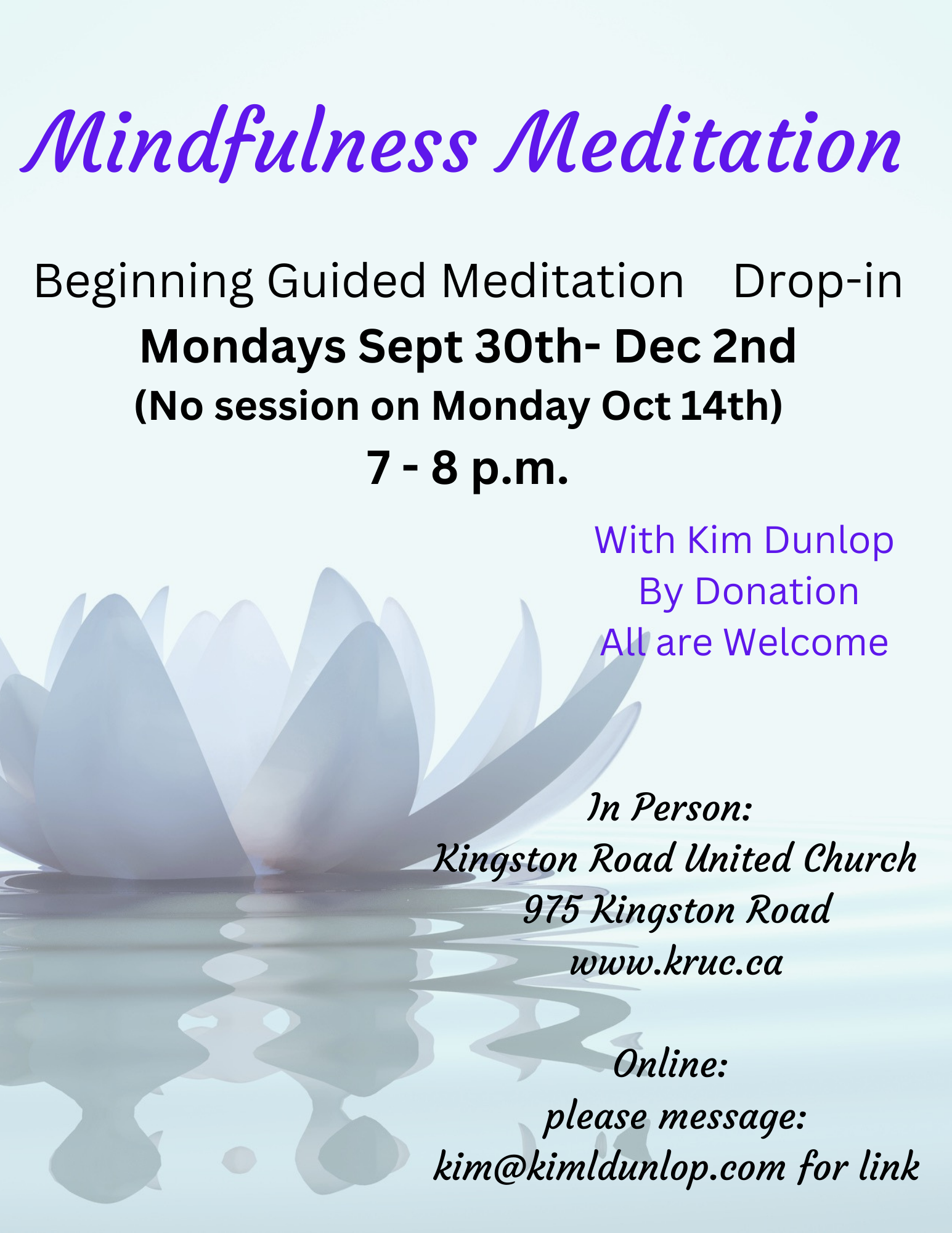 These evening sessions include gentle movements and different types of guided meditation in a safe, calm, and comfortable space. Leader Kim Dunlop is an experienced meditation guide, shiatsu and massage therapist, teacher, and writer, who has enriched the lives of many people. Classes are every Monday, all ages are welcome, and cost is donate what […] |