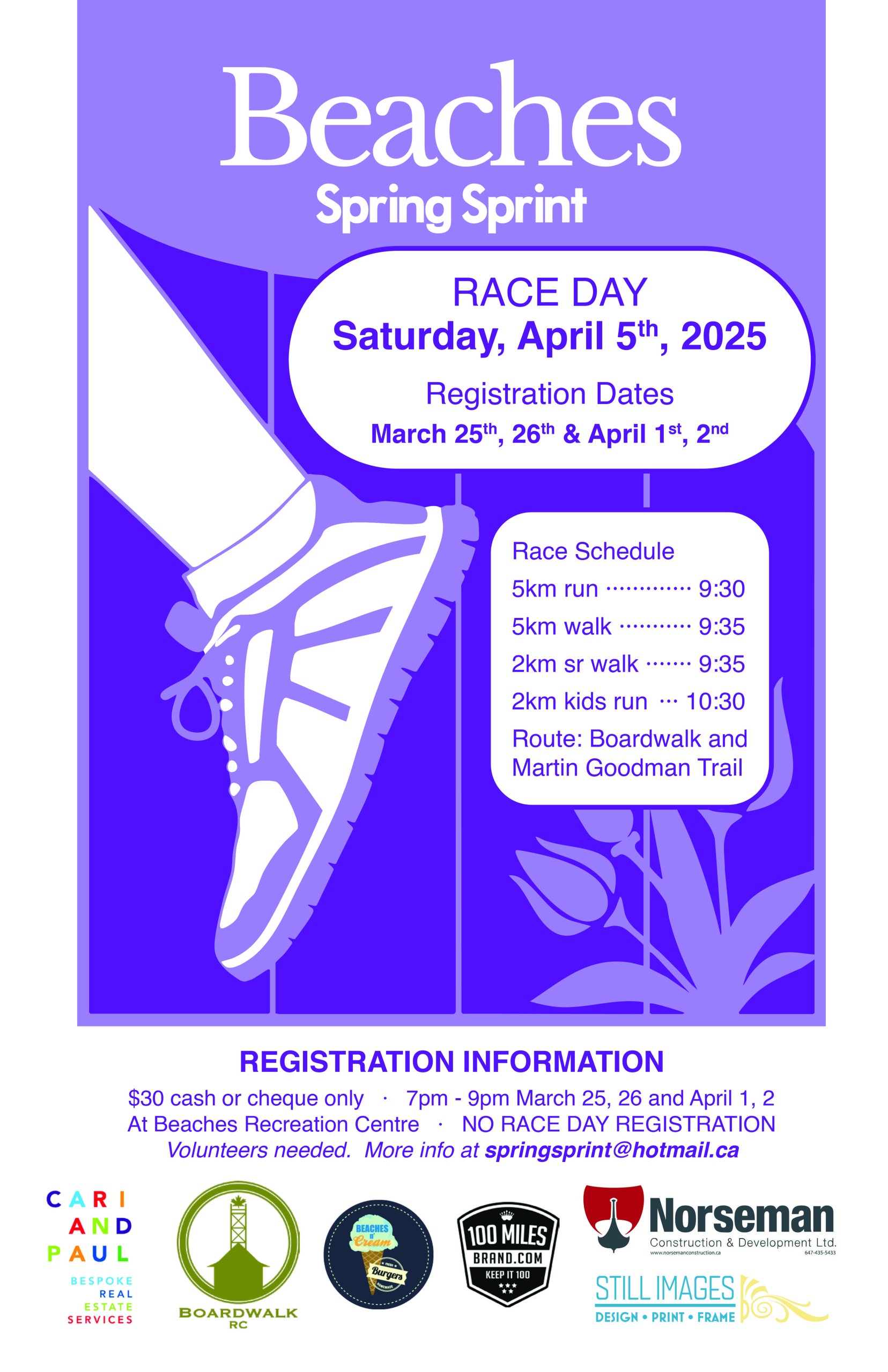 Annual 5km and 2km run/walk along the boardwalks and Martin Goodman Trail. Event organized by the Beaches Recreation Centre Advisory Council. Registration in advance at the Beaches Recreation Centre, March […]